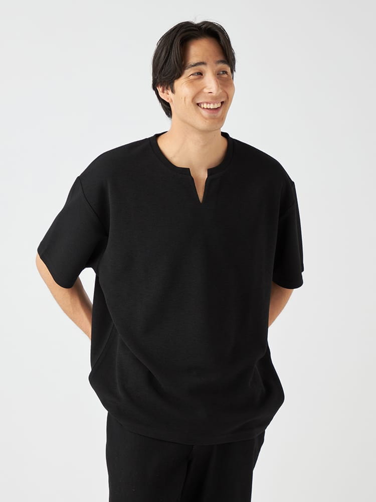 - キーネック半袖Tシャツ