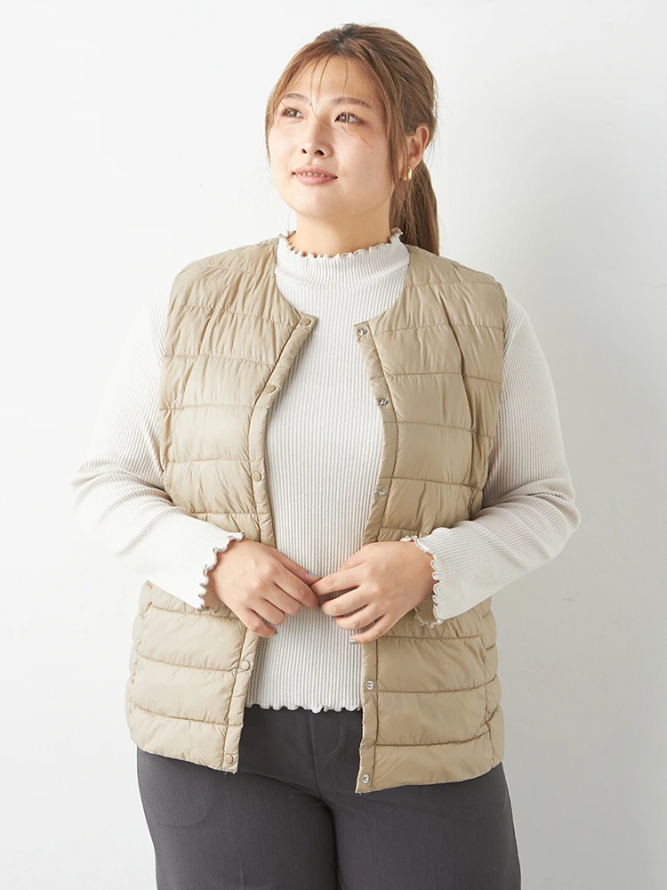 【Viola(ビオラ)】ノーカラーファイバーダウンベスト