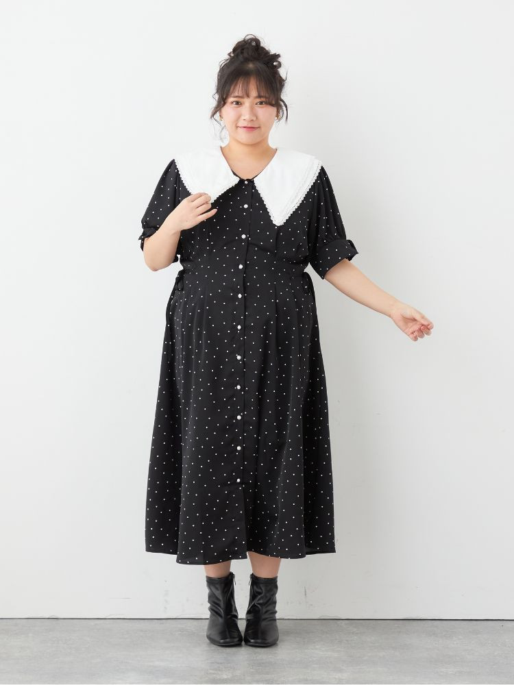 ダブルビッグカラーシャツワンピ【4L-6L】