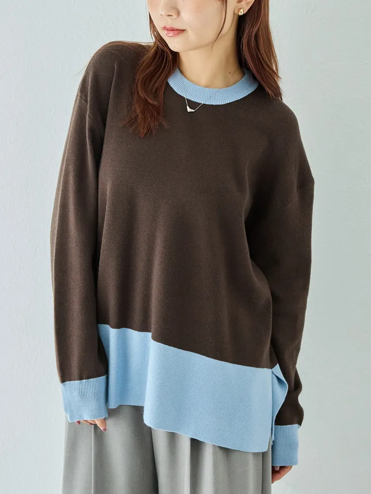 【LAVEANGE(ラビアンジェ)】バイカラークルーネックニット