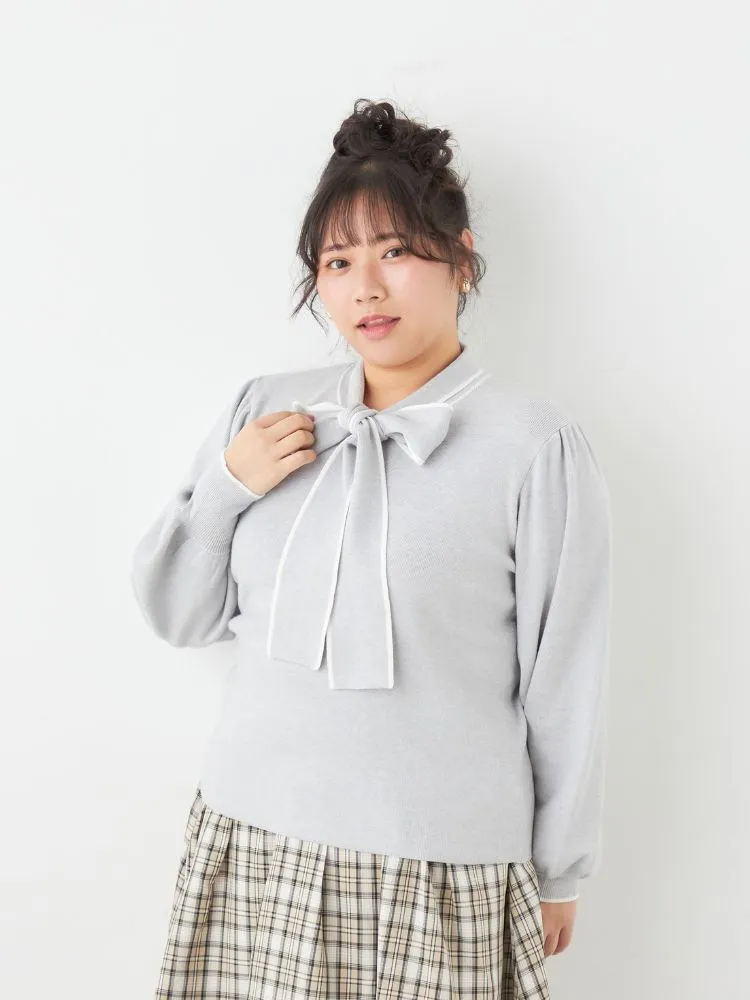 シンプルボウタイニットトップス
