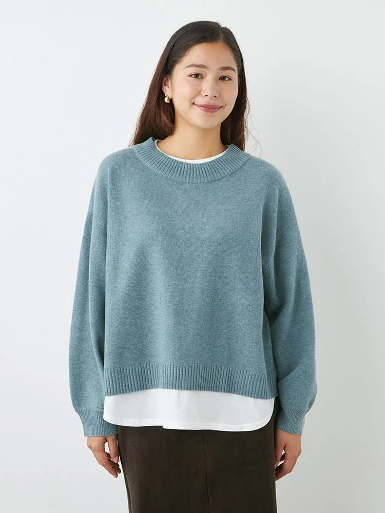 【ノージーン】鹿の子編み裾フェイクレイヤードセーター