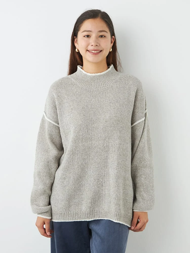 カシミヤタッチモックネックニット