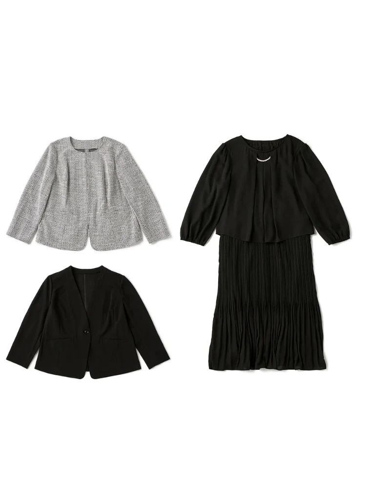 ジャケット+ツイードジャケット+ワンピース3点セット