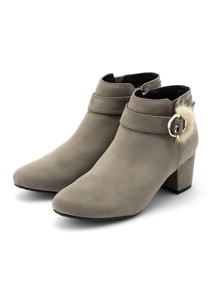 エコファー付きバックルが、足元に季節感を呼び込むブーティです。