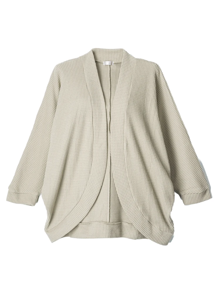 大きいサイズのレディスワッフル起毛ドルマンカーデです。