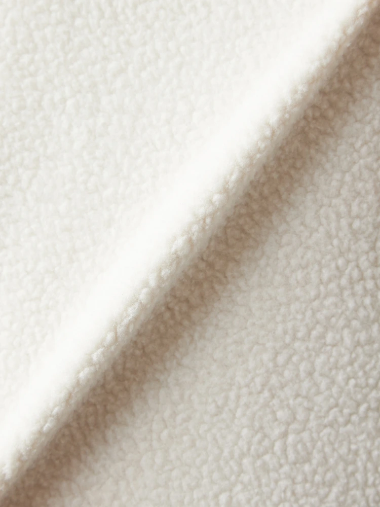 軽量で保温性に優れるボア生地で仕立てた、ノーカラージップアップブルゾンです。
