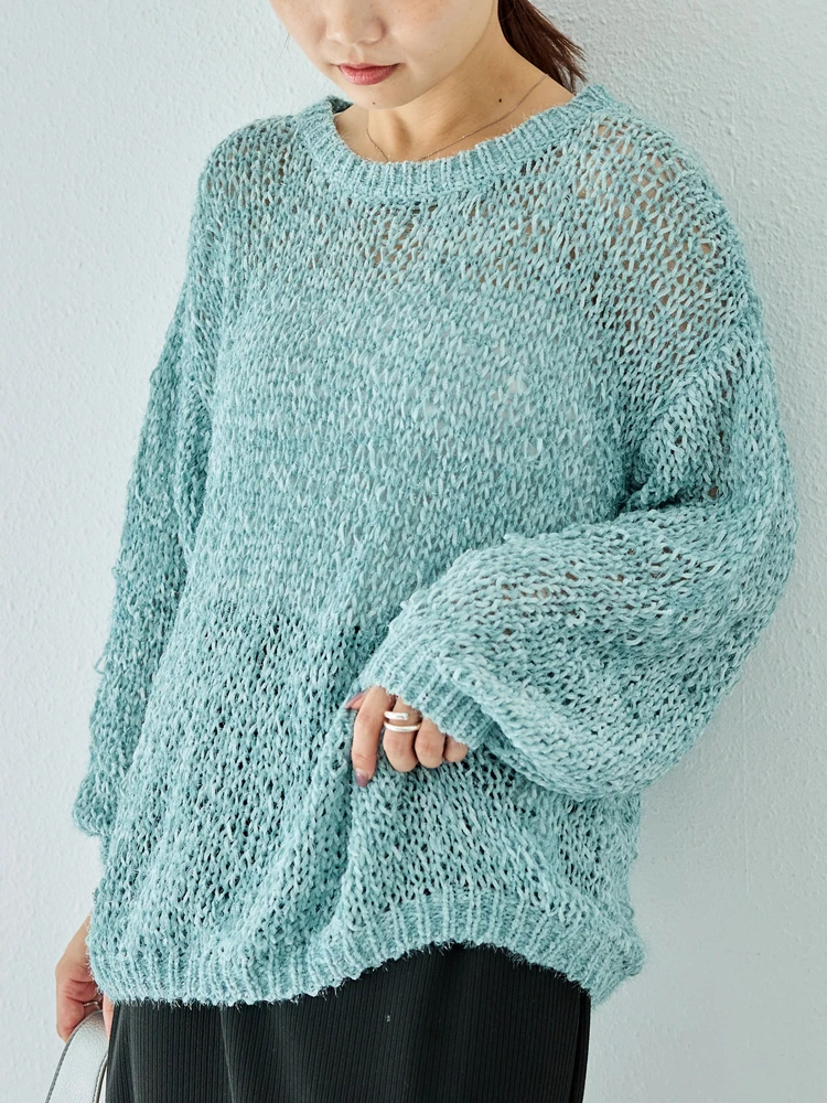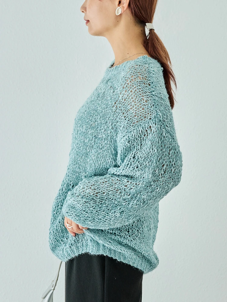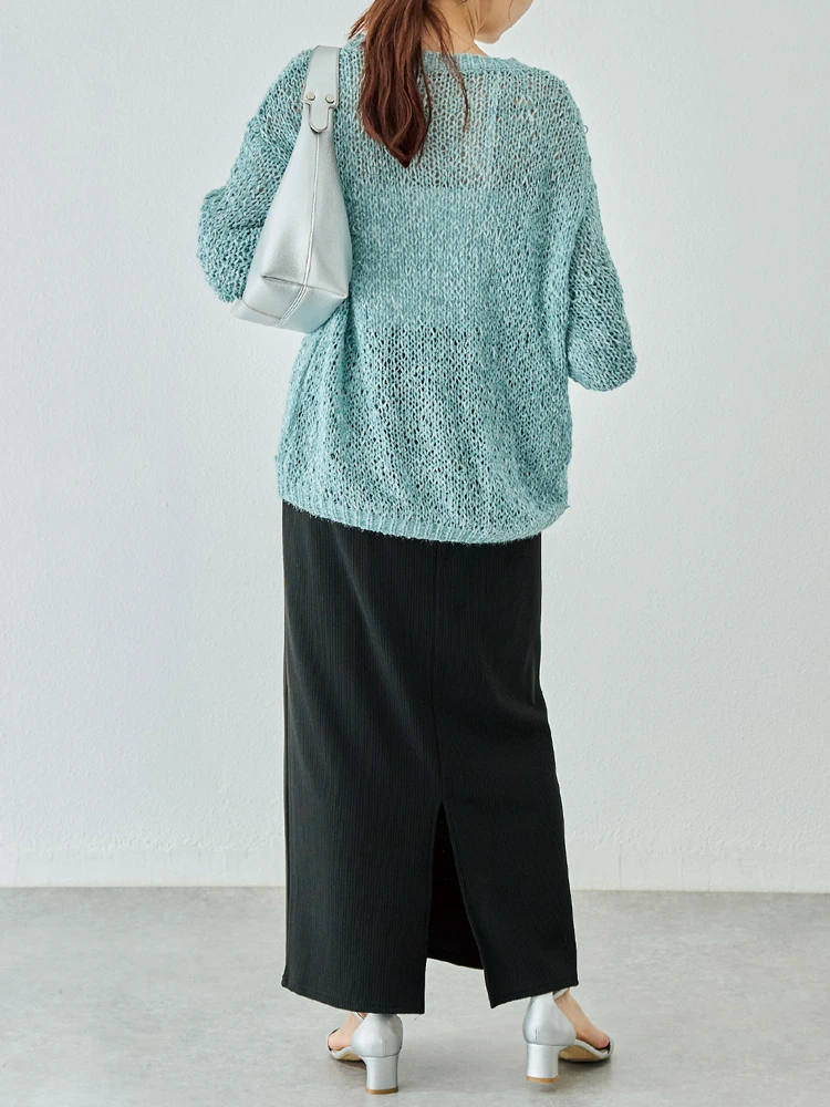 ざっくりと編まれた素材は程よい透け感があり、レイヤードスタイルを楽しめるのもポイント。