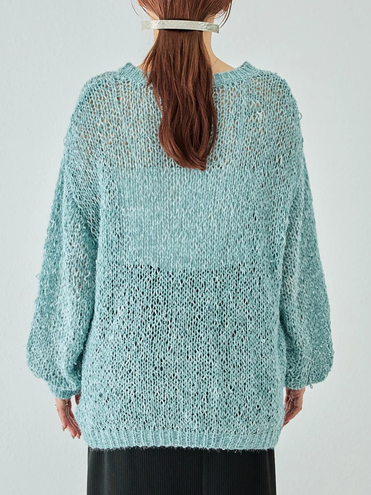 ふんわりとしたモールヤーンにラメ糸を織り交ぜた、軽やかで華やかな印象のプルオーバー。