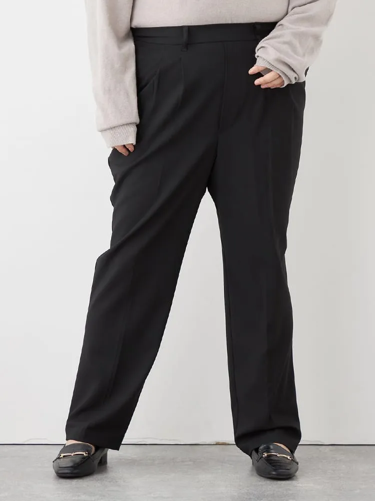 大きいサイズ レディース ストレッチタックテーパードパンツ