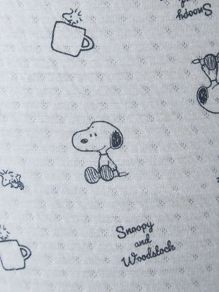 スヌーピーのプリントが胸にありとても癒されるパジャマです。