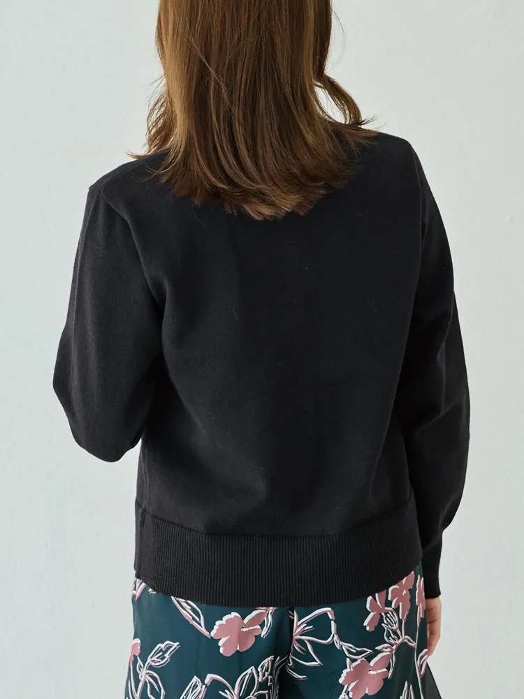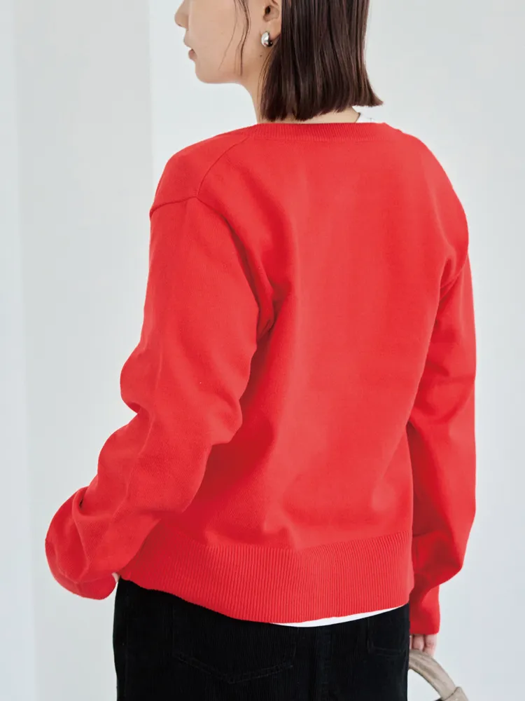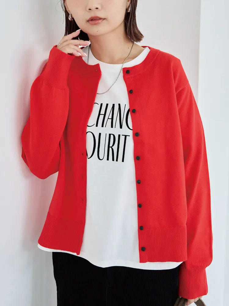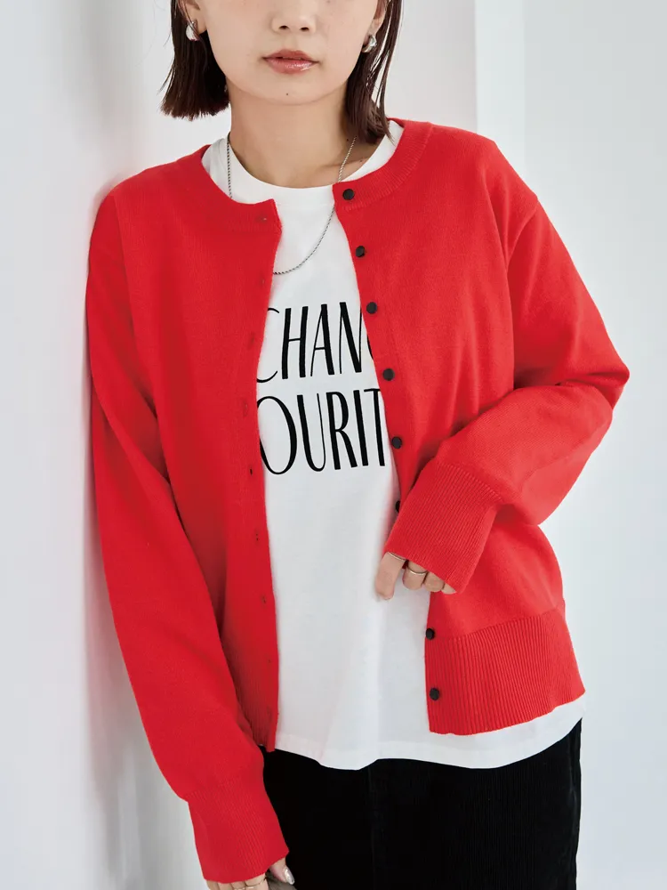 程よい厚みのニット素材で、羽織りとしてもトップスとしても着回し可能。