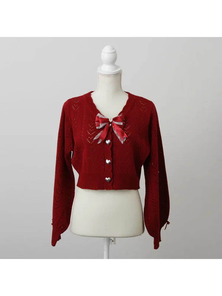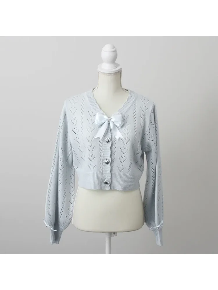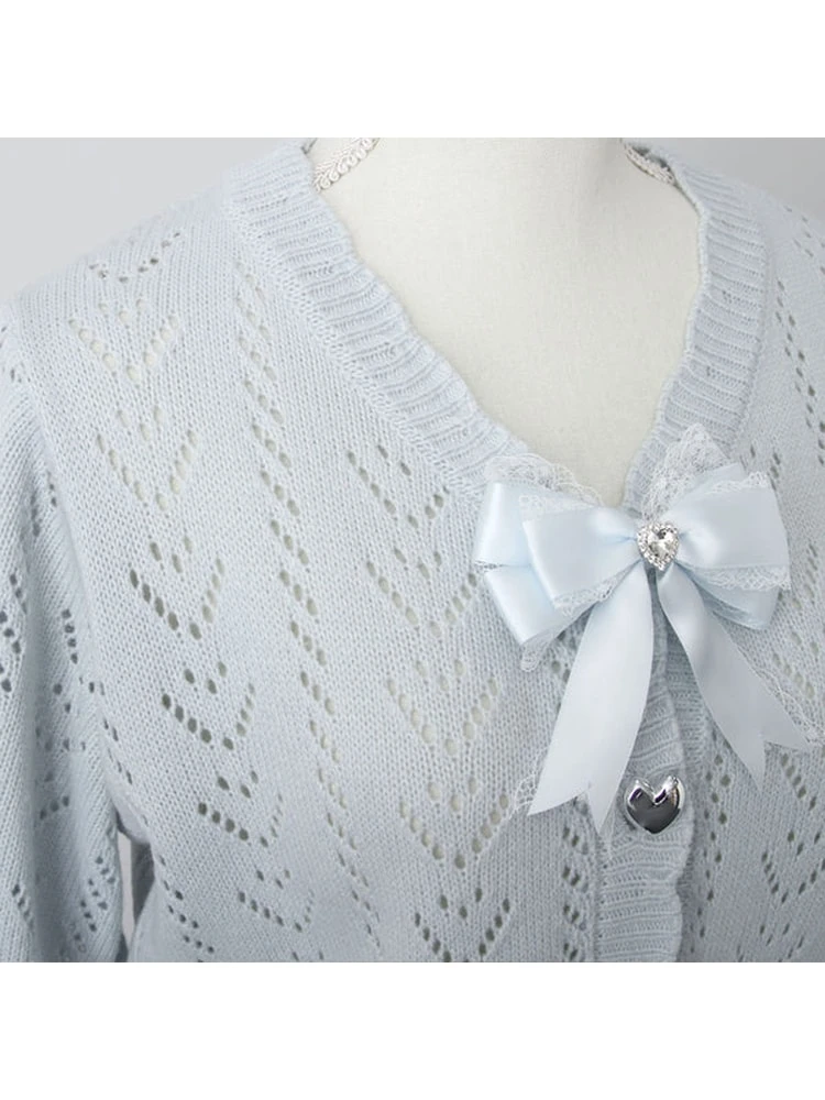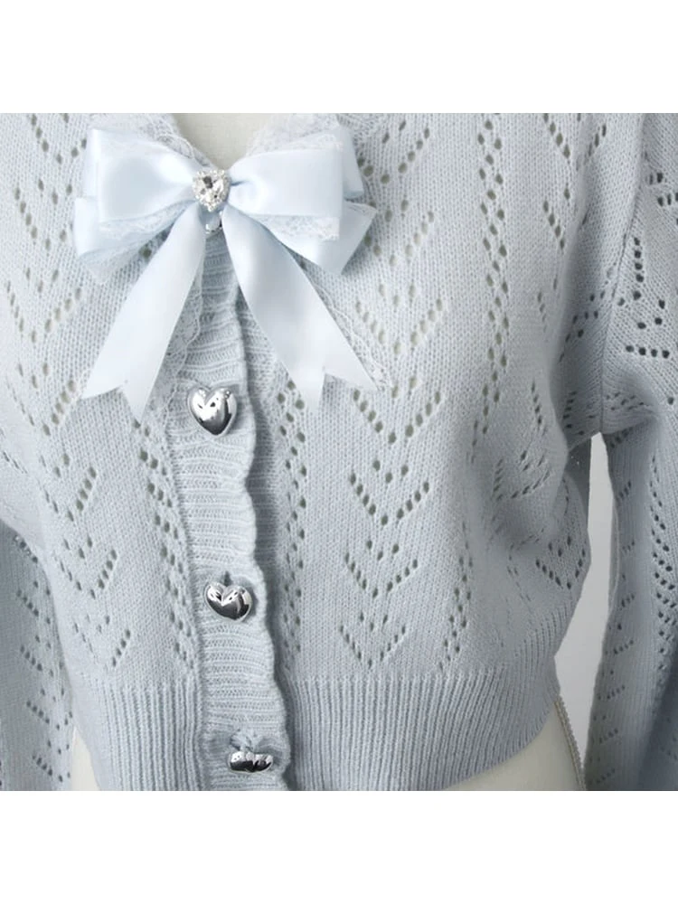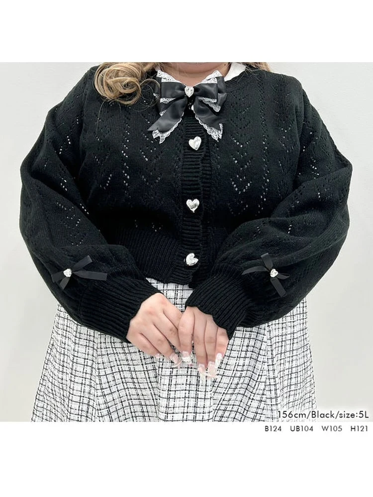 前立てにはシルバーハートの立体ハートボタンとキラキラビジューのかわいいリボンがポイント