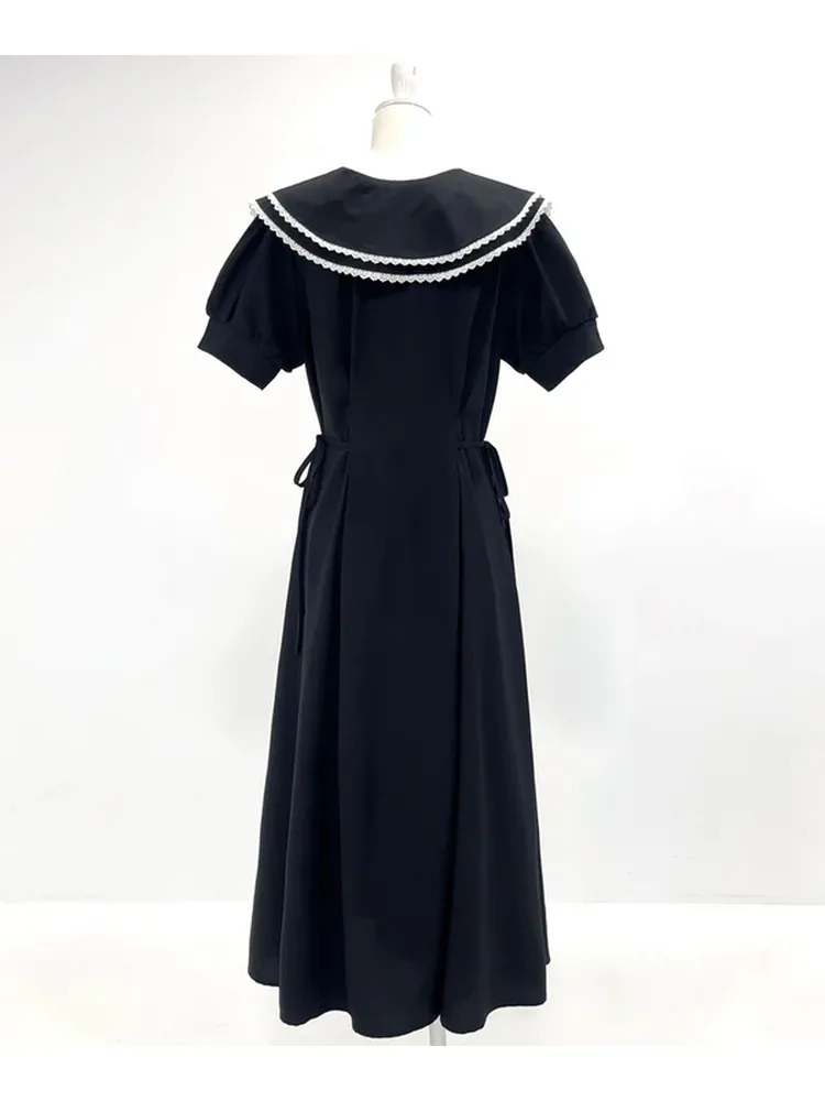 襟の縁にあしらったスカラップレースは、クラシカルなムードを演出します。