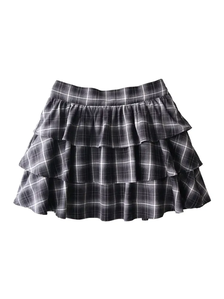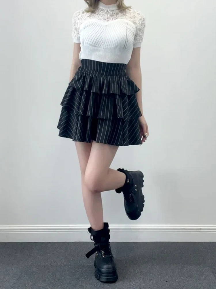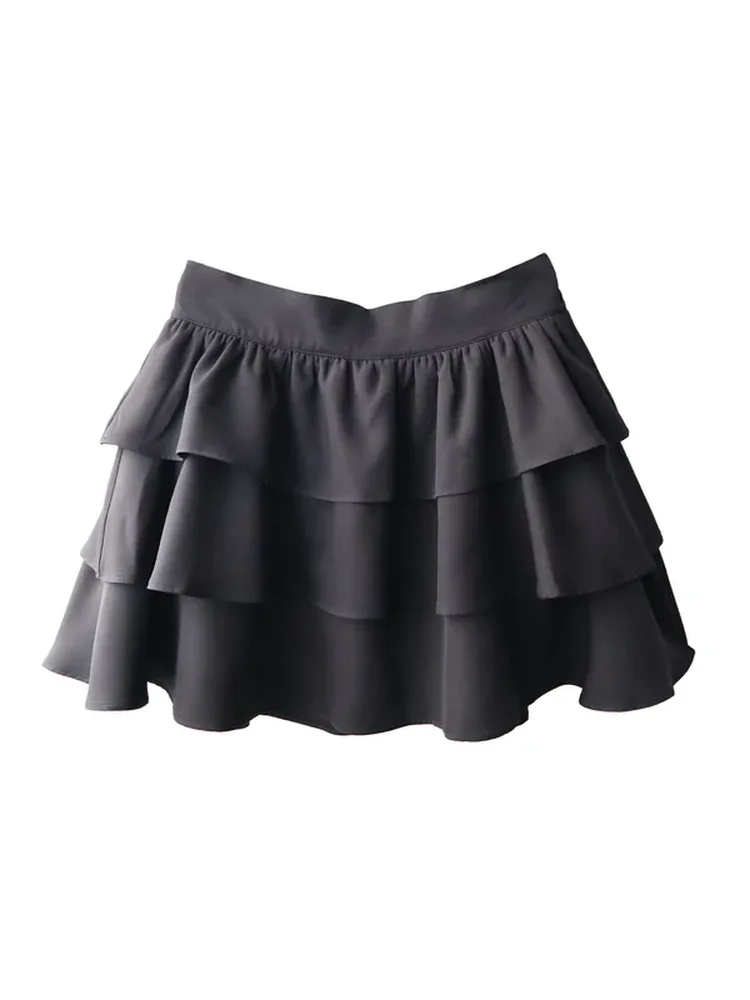 レースアップティアードミニスカート