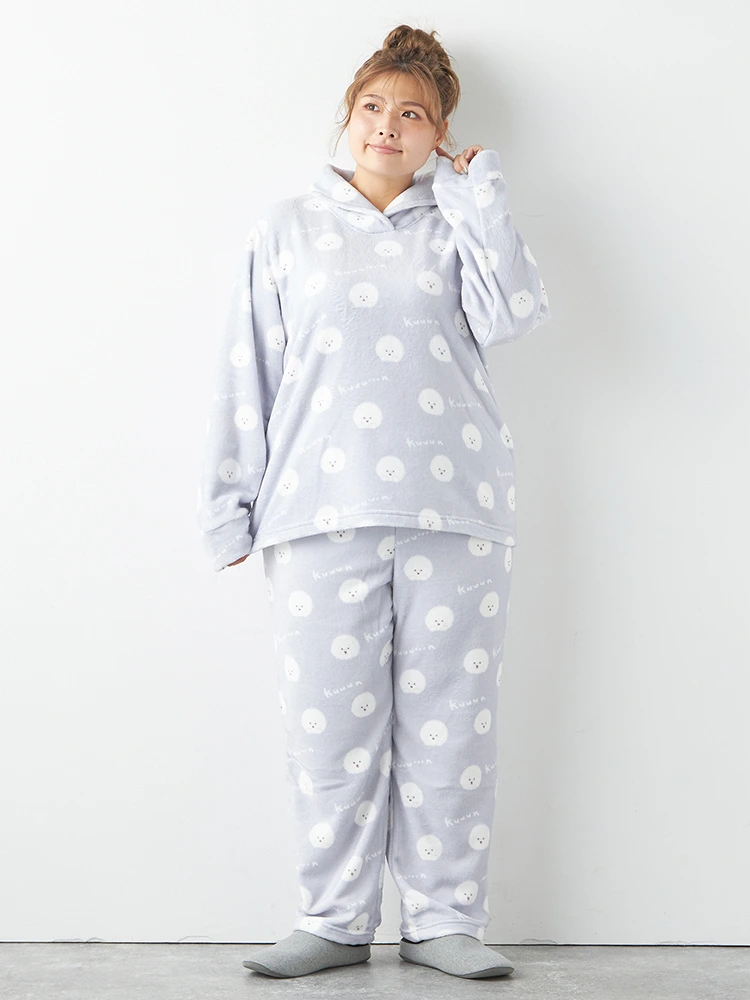 もふっと癒される、動物モチーフのルームウェアセット。ふわふわ素材のパーカーとロングパンツは、寒い季節にぴったりのあたたかさ。