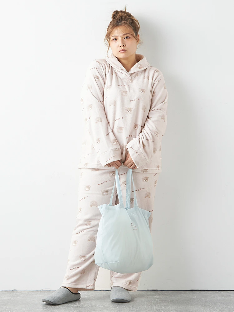 ふんわりやさしい着心地が魅力の、クマモチーフのルームウェアセット。やわらかなフリース素材のパーカーと総柄パンツが、寒い季節のおうち時間をあたたかく包み込みます。