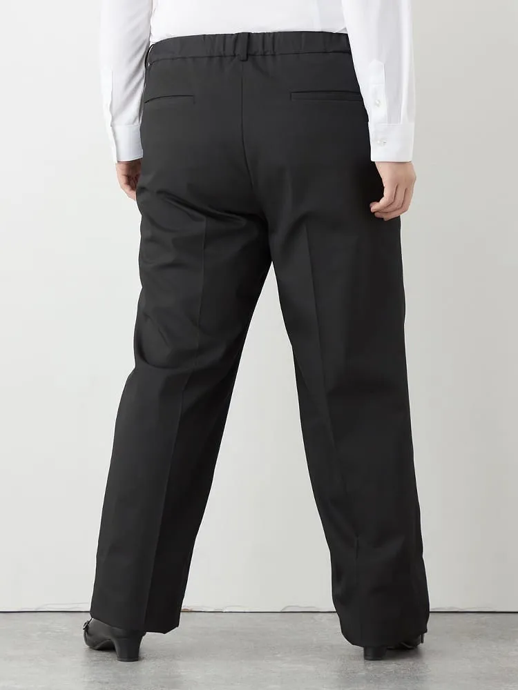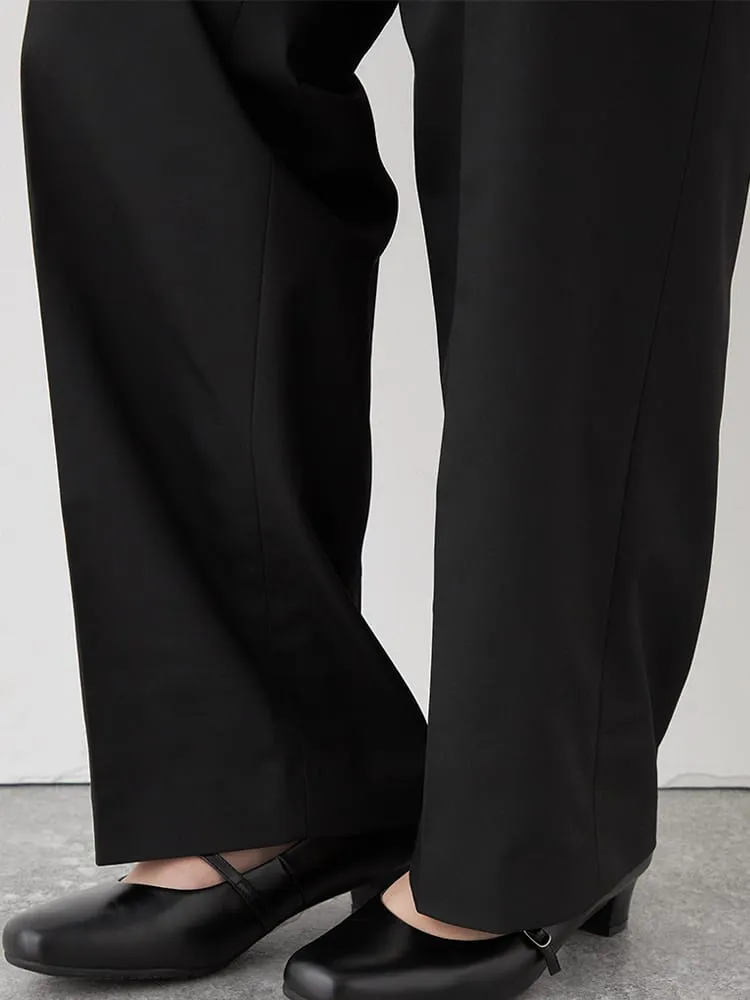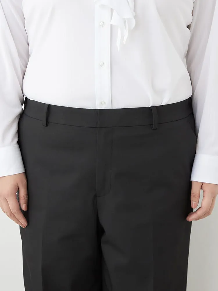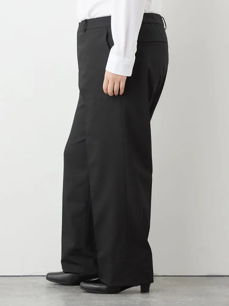 腰回りにはタックを入れずにセンタープレスを施すことですっきりとしたスタイリッシュな印象のデザイン。