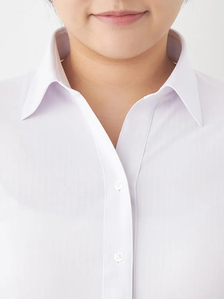 【完全ノーアイロン】レディース半袖アイシャツブラウス無地レギュラーホワイト