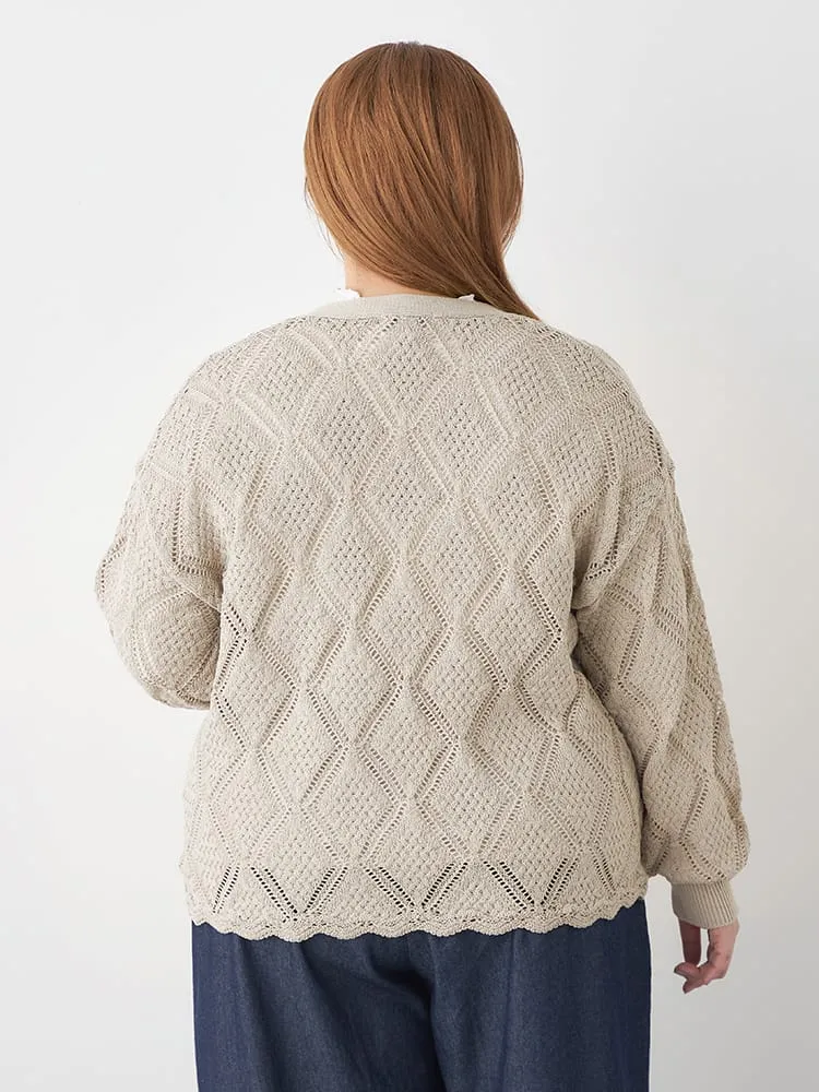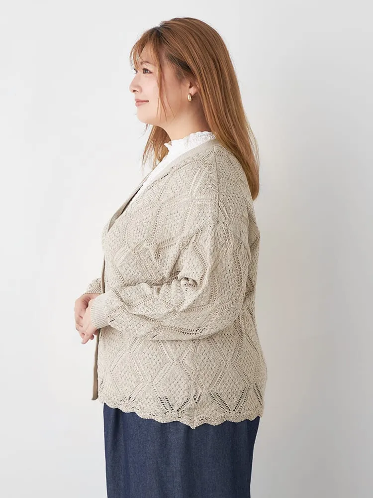 大きいサイズ レディース 【Viola(ビオラ)】Vネック透かし柄カーディガン