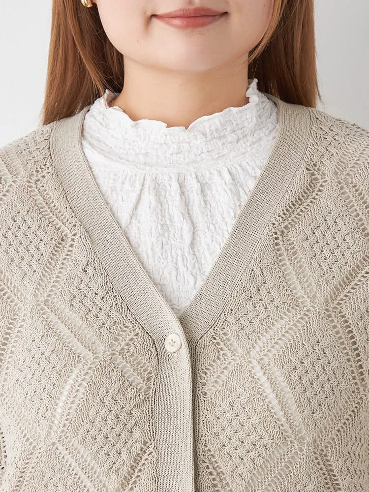 【Viola(ビオラ)】Vネック透かし柄カーディガン