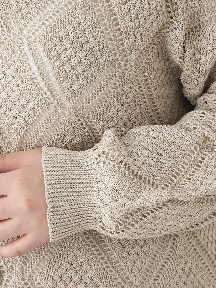 透かし柄のデザインが春らしいVネックのカーディガンです。