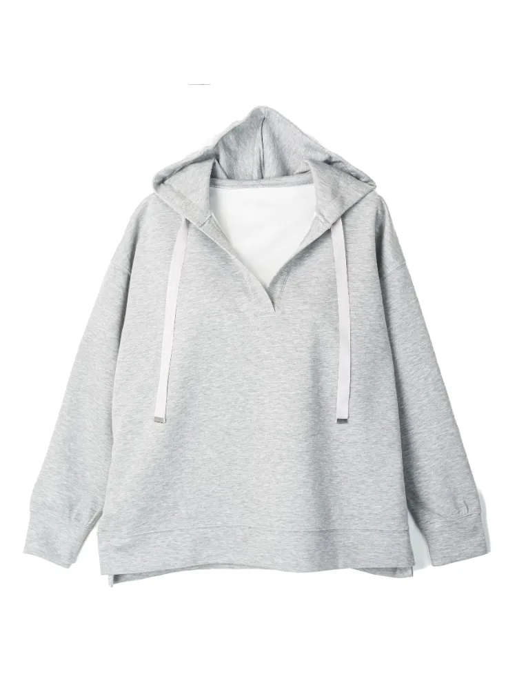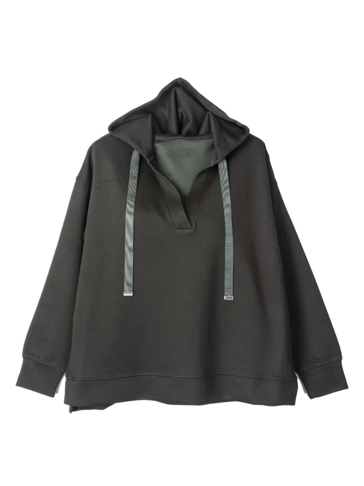 大きいサイズ レディース Vネックサイドスリットダンボールパーカー
