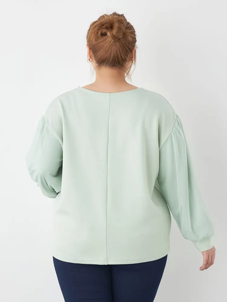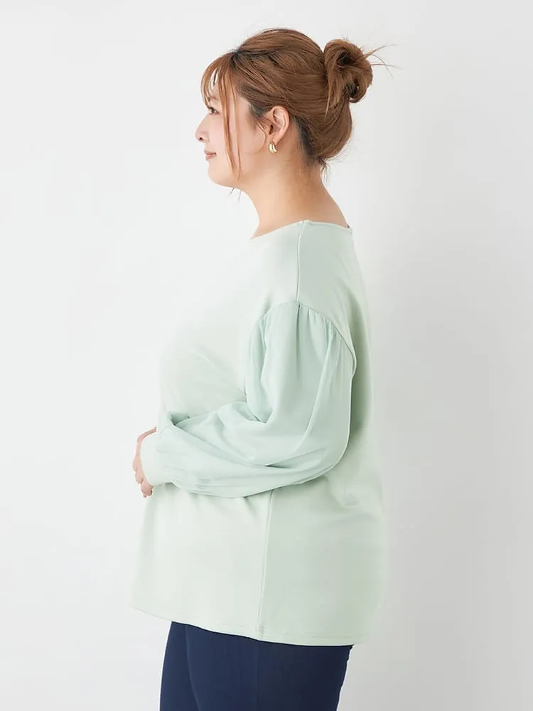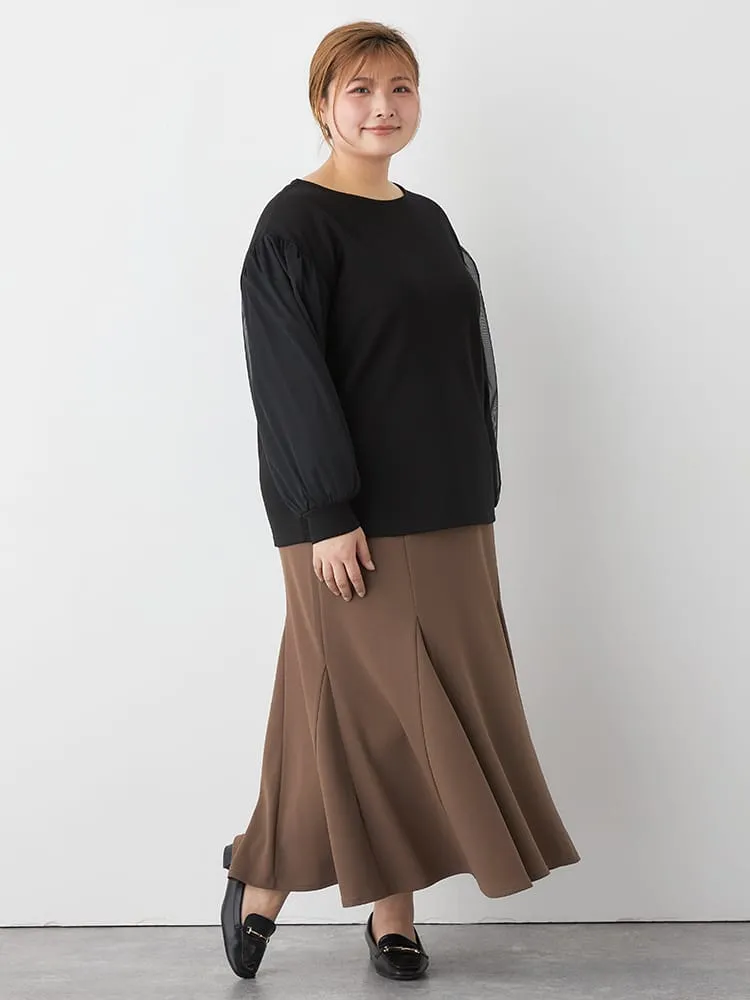 大きいサイズ レディース チュールスリーブクルーネックダンボールプルオーバー