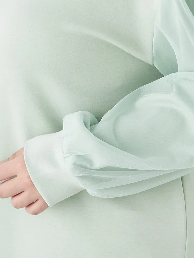 チュールスリーブクルーネックダンボールプルオーバー