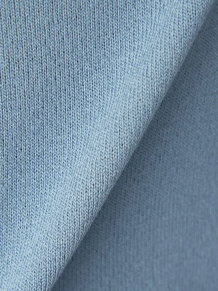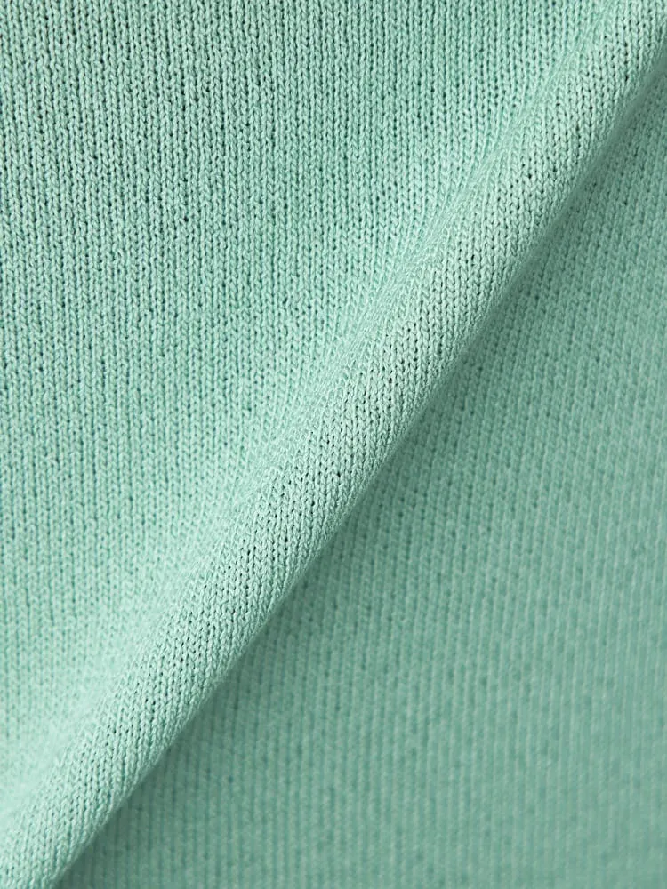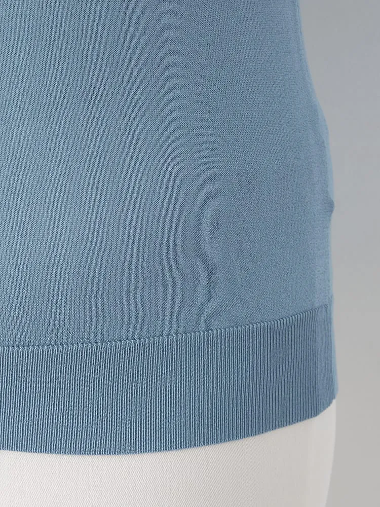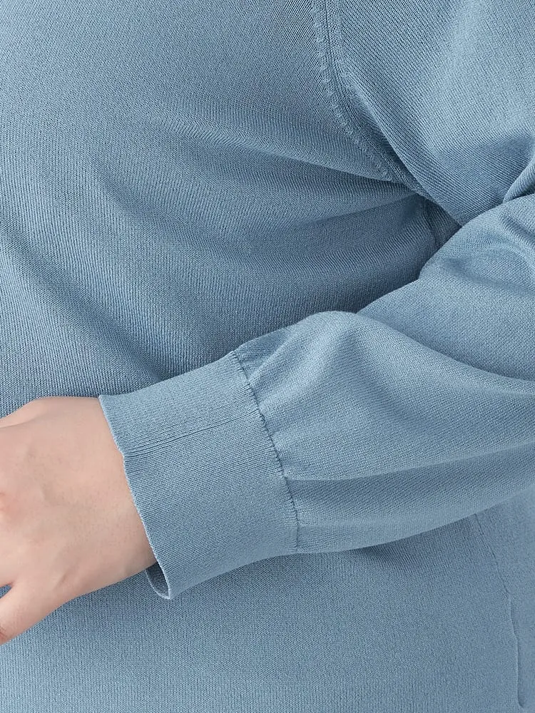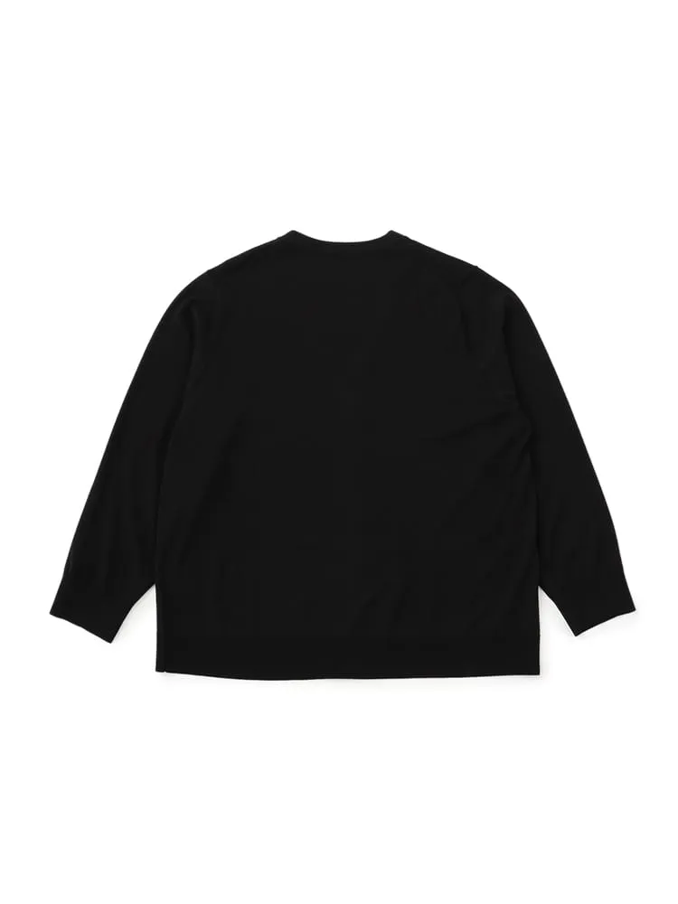 Vネックラインを採用しており、首回りにシャープな印象をもたらします。