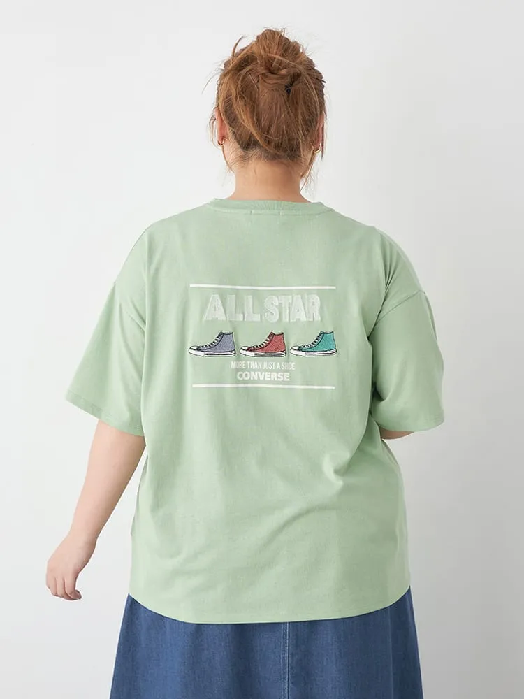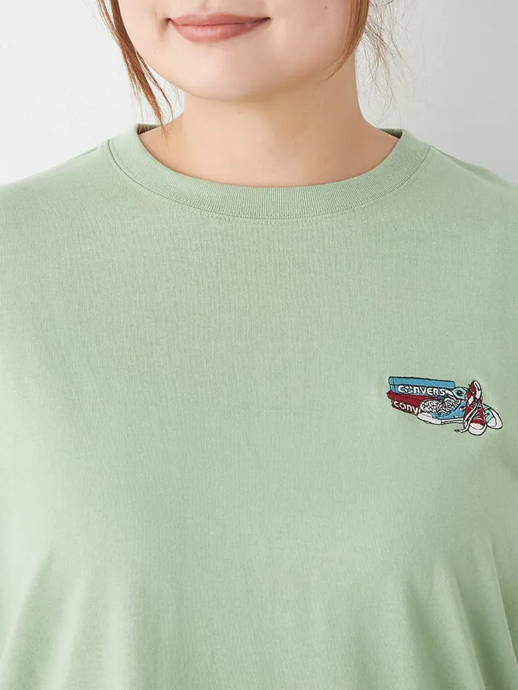 大きいサイズ レディース 【CONVERSE(コンバース)】フロントバックシューズ刺繍Tシャツ