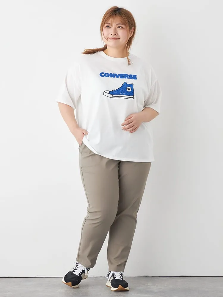 大きいサイズ レディース 【CONVERSE(コンバース)】シューズサガラ刺繍Tシャツ