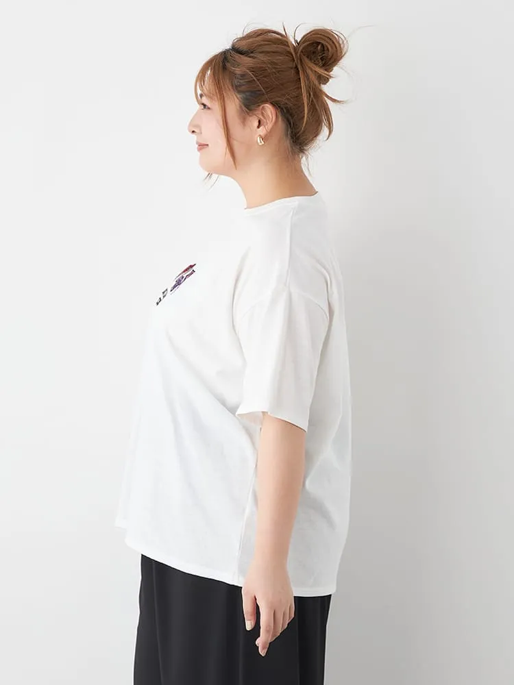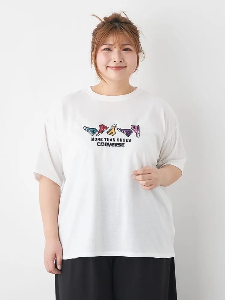 大きいサイズ レディース 【CONVERSE(コンバース)】シューズ総刺繍Tシャツ