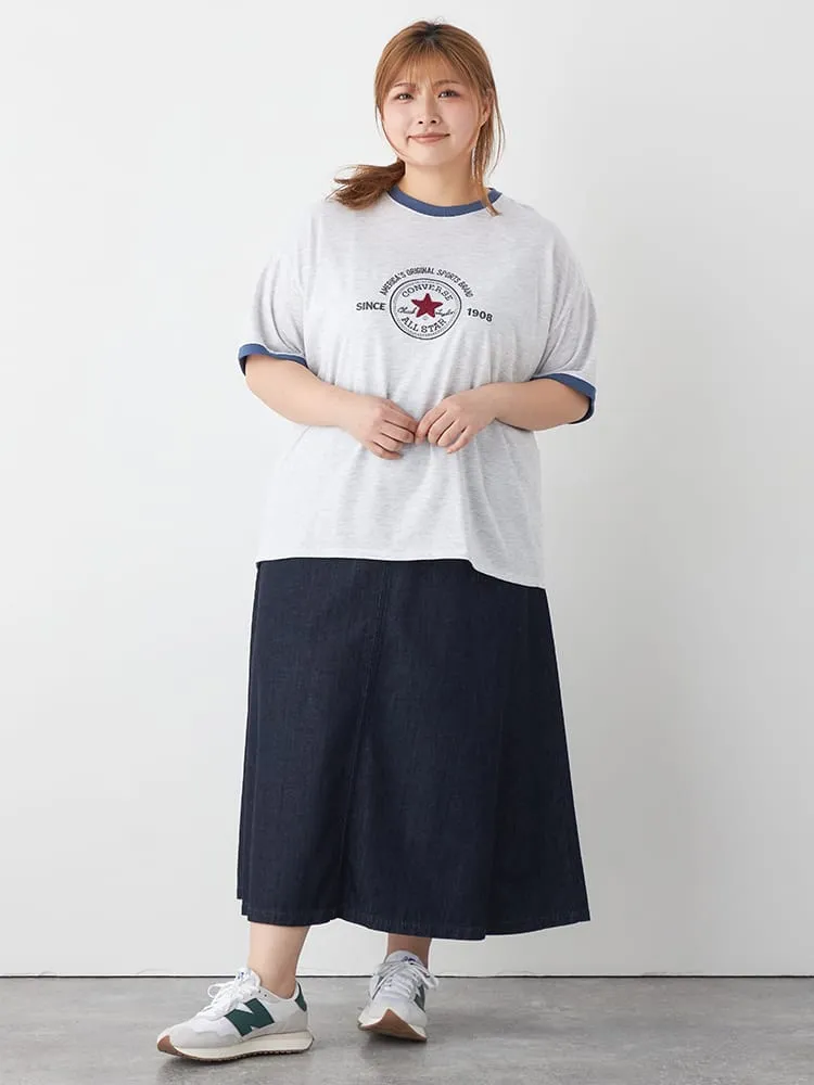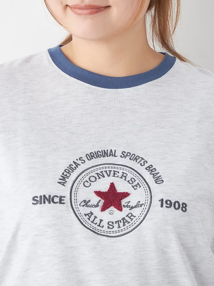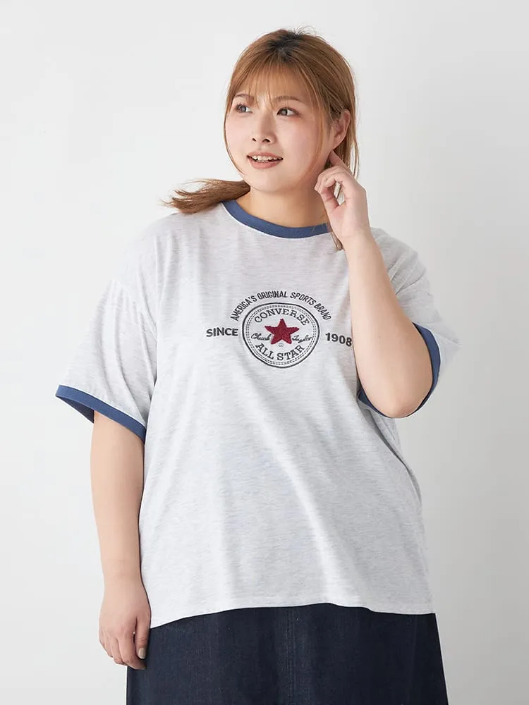大きいサイズ レディース 【CONVERSE(コンバース)】パッチサガラ刺繍リンガーTシャツ