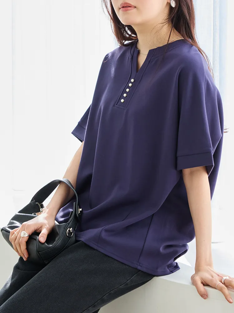 【LAVEANGE(ラビアンジェ)】スキッパーパールプルオーバー