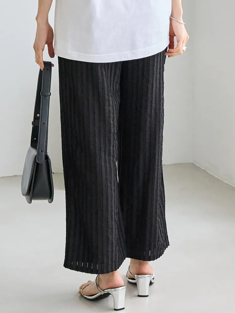 【LAVEANGE(ラビアンジェ)】ストライプレースイージーパンツ