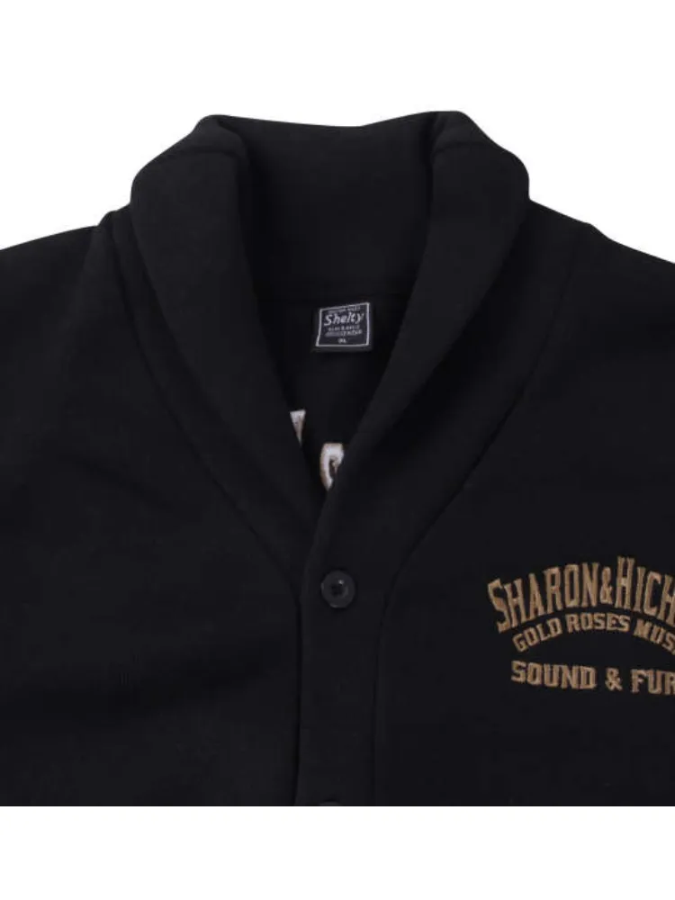 【SHELTY(シェルティ)】ニットフリースルード系刺繍ショールカーディガン *カタログ商品(ブラック)