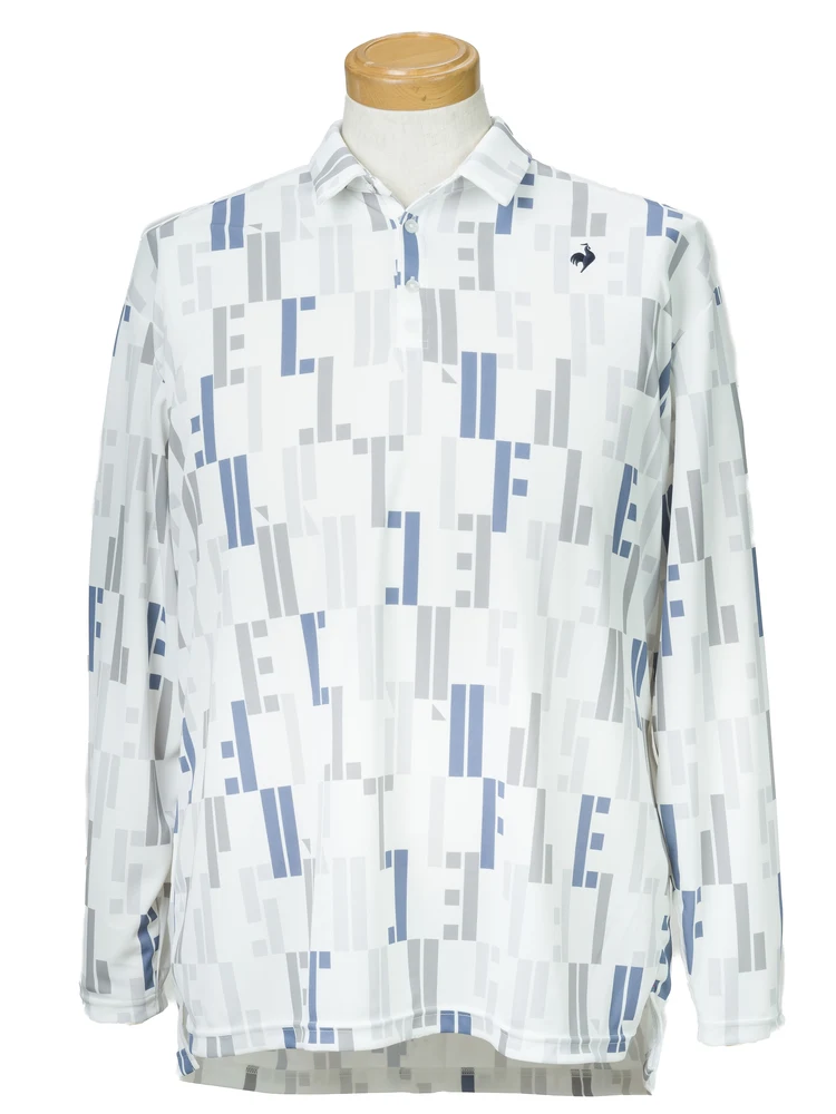 【ルコックゴルフ】ゴルフ総柄プリントシャツ(ホワイト)