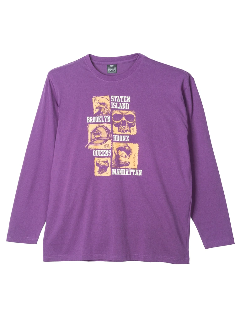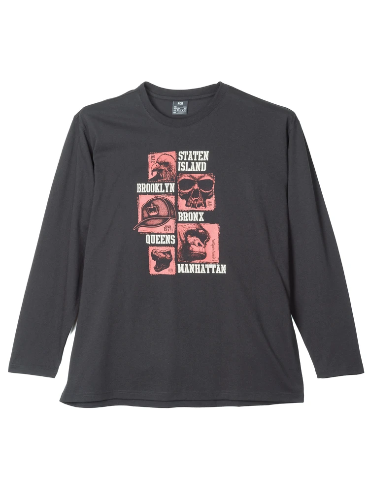 大きいサイズ メンズ プリントロングTシャツ(リアル)(ブラック)