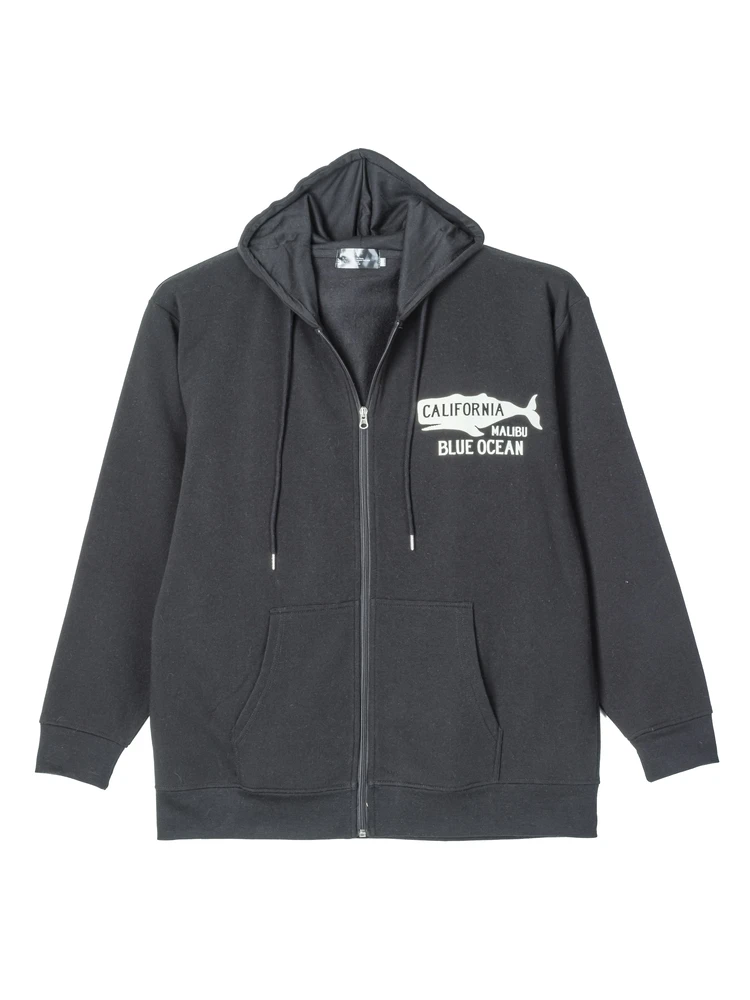 大きいサイズ メンズ 裏起毛FZパーカー(カレッジ)(ネイビー)