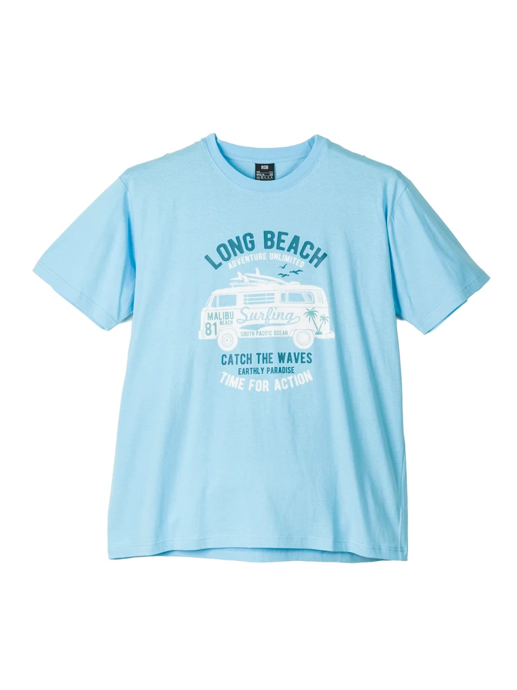 大きいサイズ メンズ 半袖プリントTシャツ(バス)(ブラック)