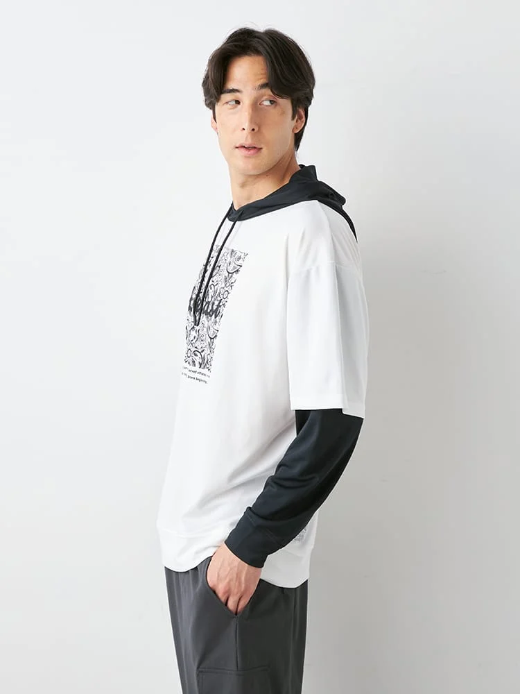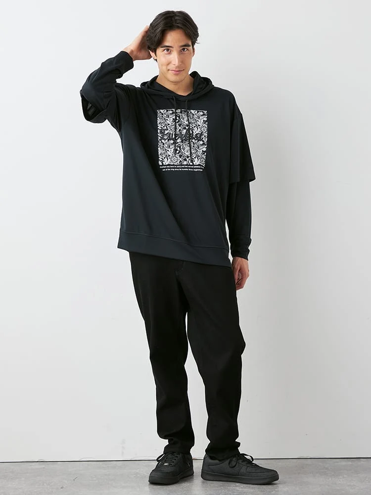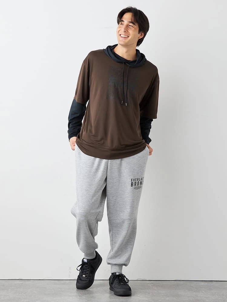 【EVERLAST(エバーラスト)】レイヤードプルパーカー(D.ブラウン)
