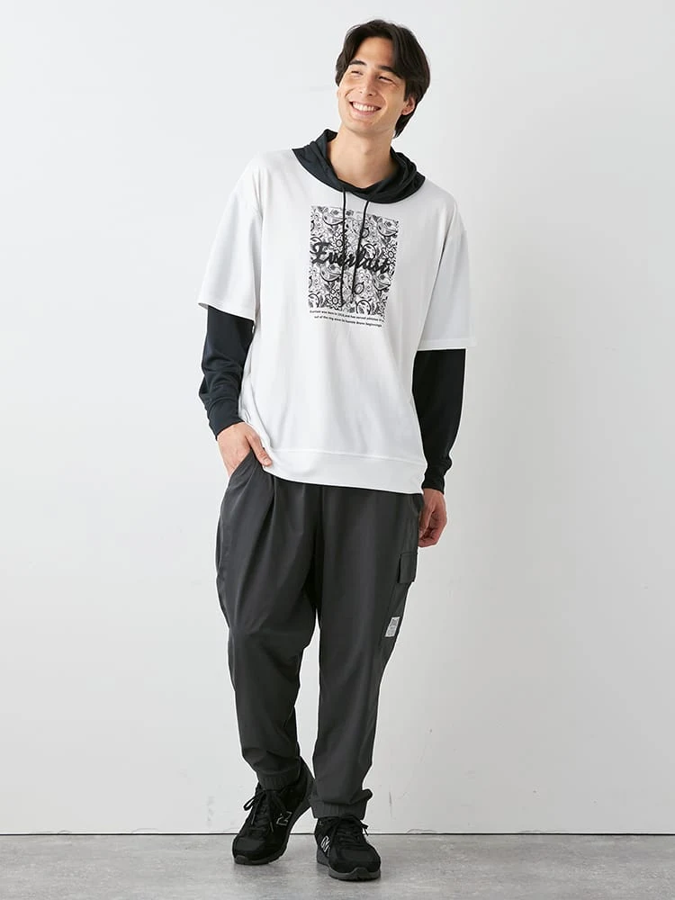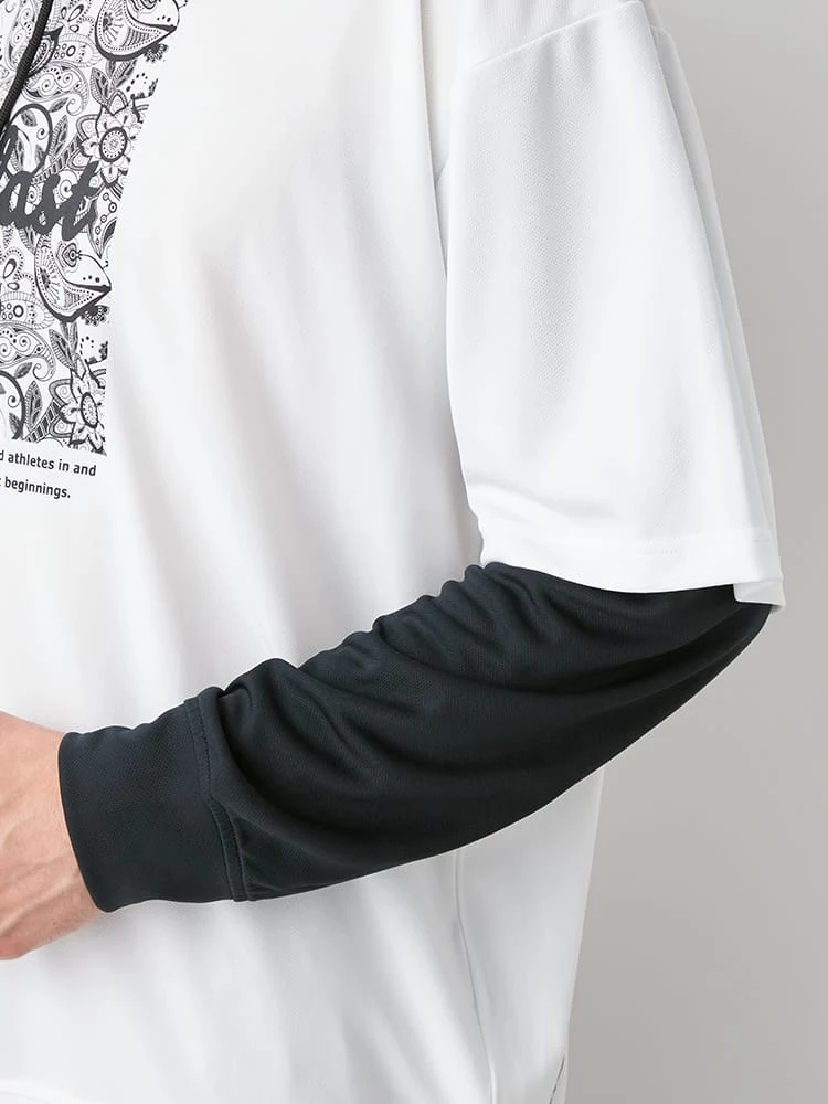 ポリエステル100%素材で吸水速乾、UVカット機能があります。