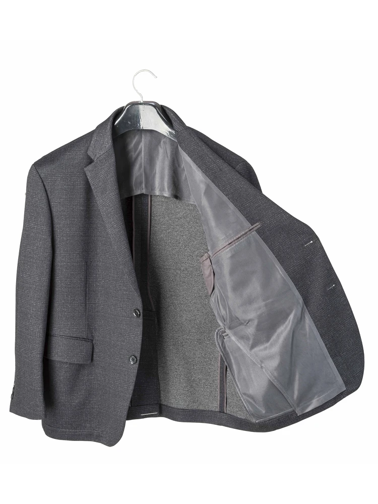 ウール調プリントが特徴のニット素材使用ストレッチ、防シワ、ウォッシャブル、消臭脇当て、静電気防止テープと多機能な1着です。