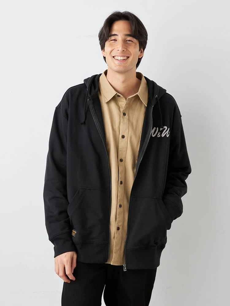 【WILDER&WEST】裏毛スウェット刺繍ZIPパーカー(M.グレー)