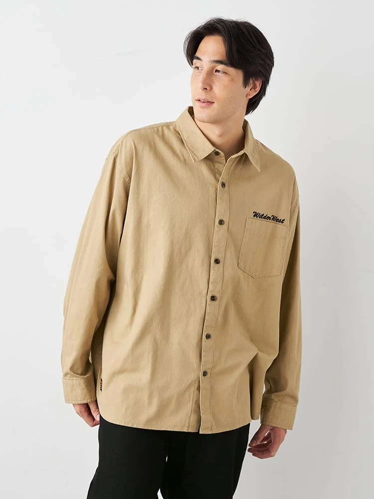 【WILDER&WEST】ツイルチェーン刺繍シャツ(ベージュ)