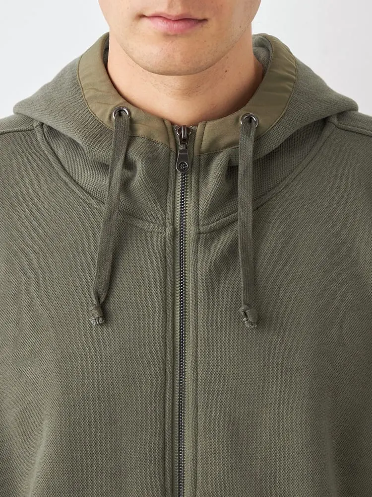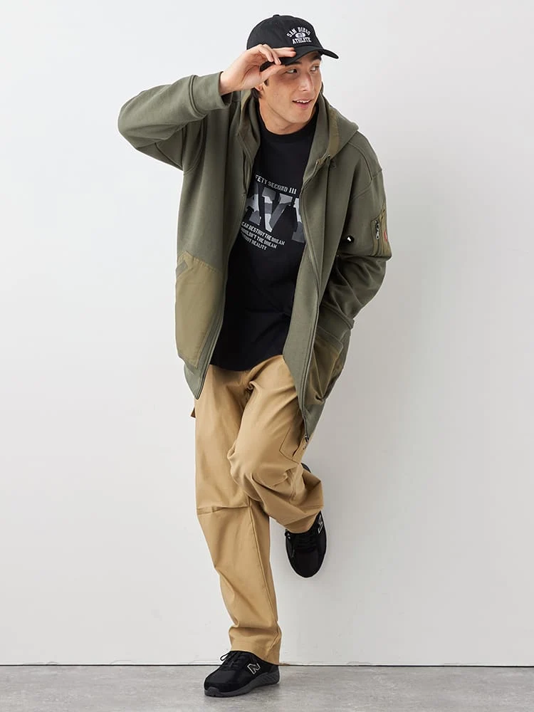 ポケットやフード先にリップストップの布帛地を使ったミリタリー感あふれるディテールです。