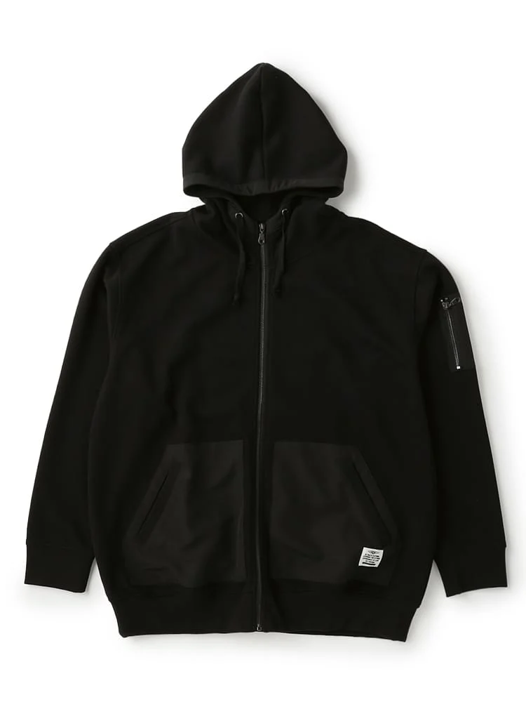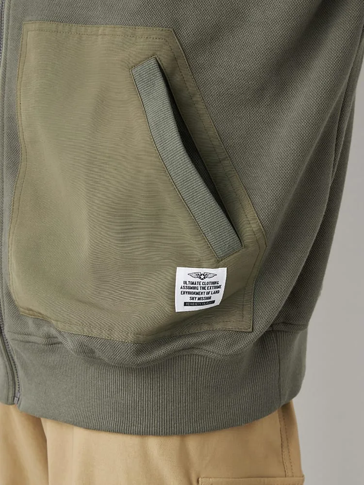 ・前面、左袖ポケットに布帛地を使用