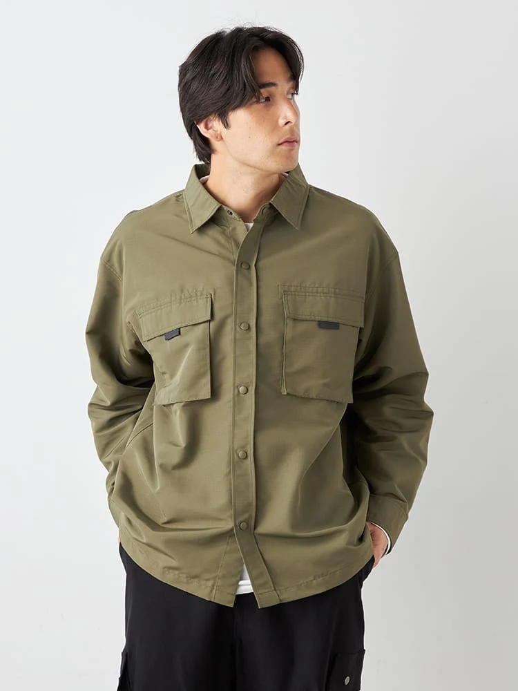 大きいサイズ メンズ 【RED BERETS(レッドベレー) 】リップストップアウターシャツ(カーキー)