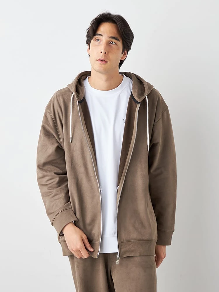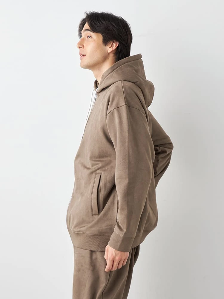 大きいサイズのメンズ 合成皮革裏フリース起毛ZIPパーカーです。